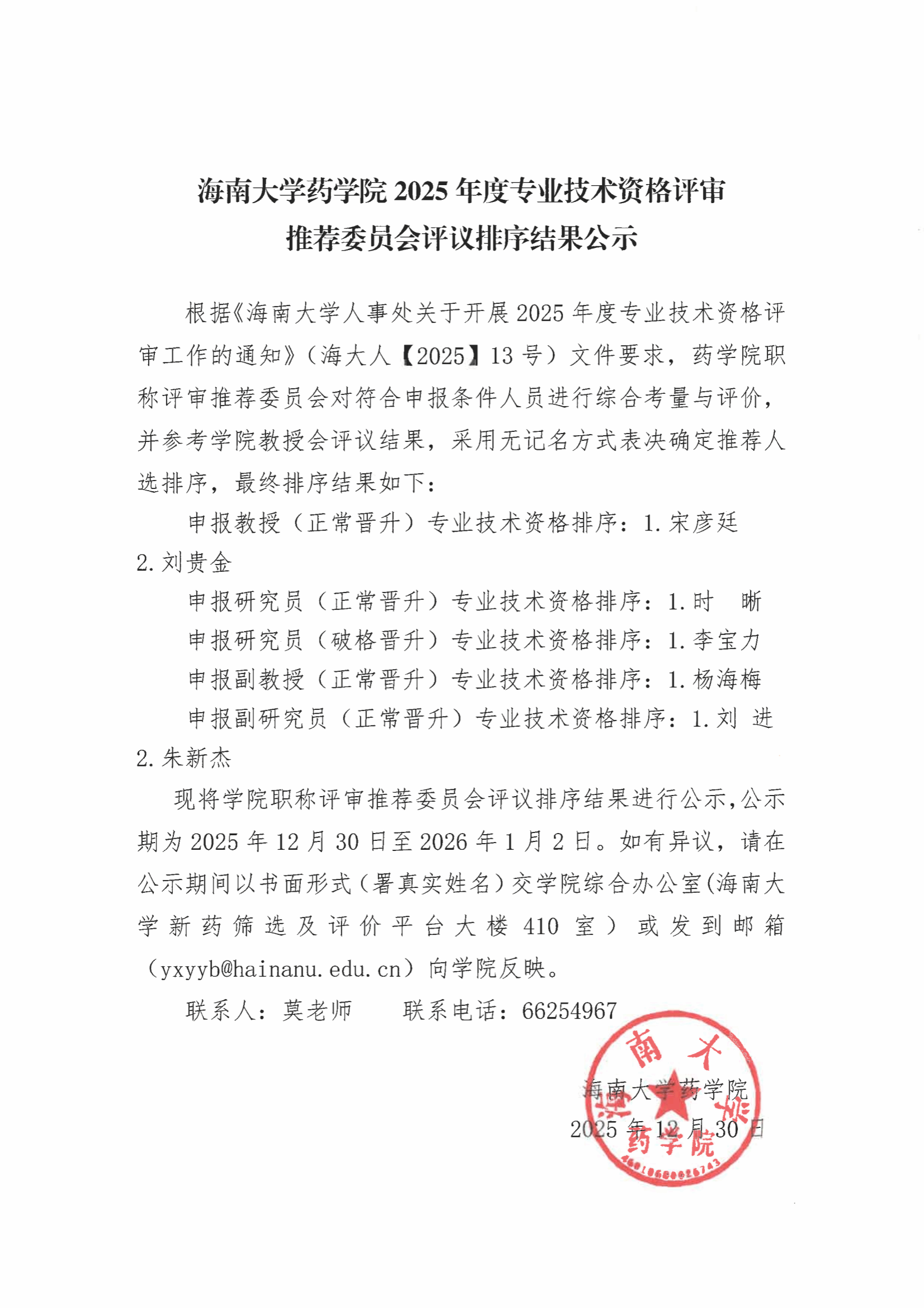 脱衣秀 2025年度专业技术资格评审推荐委员会评议排序结果公示